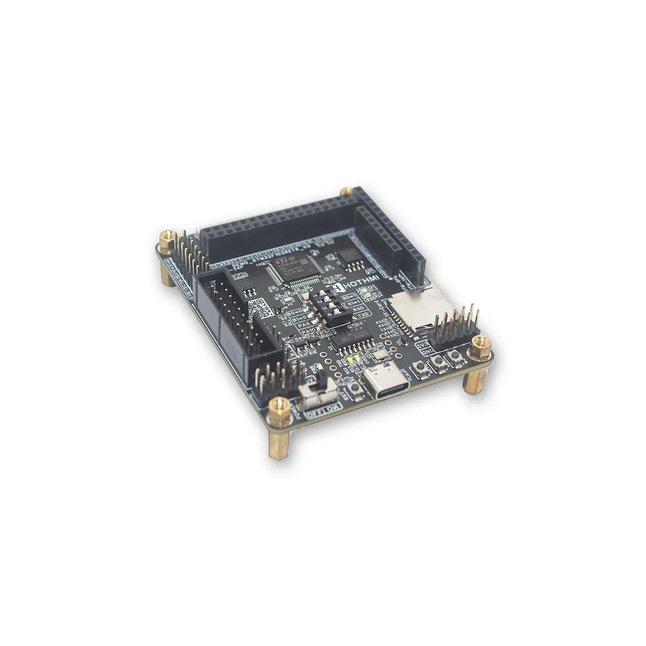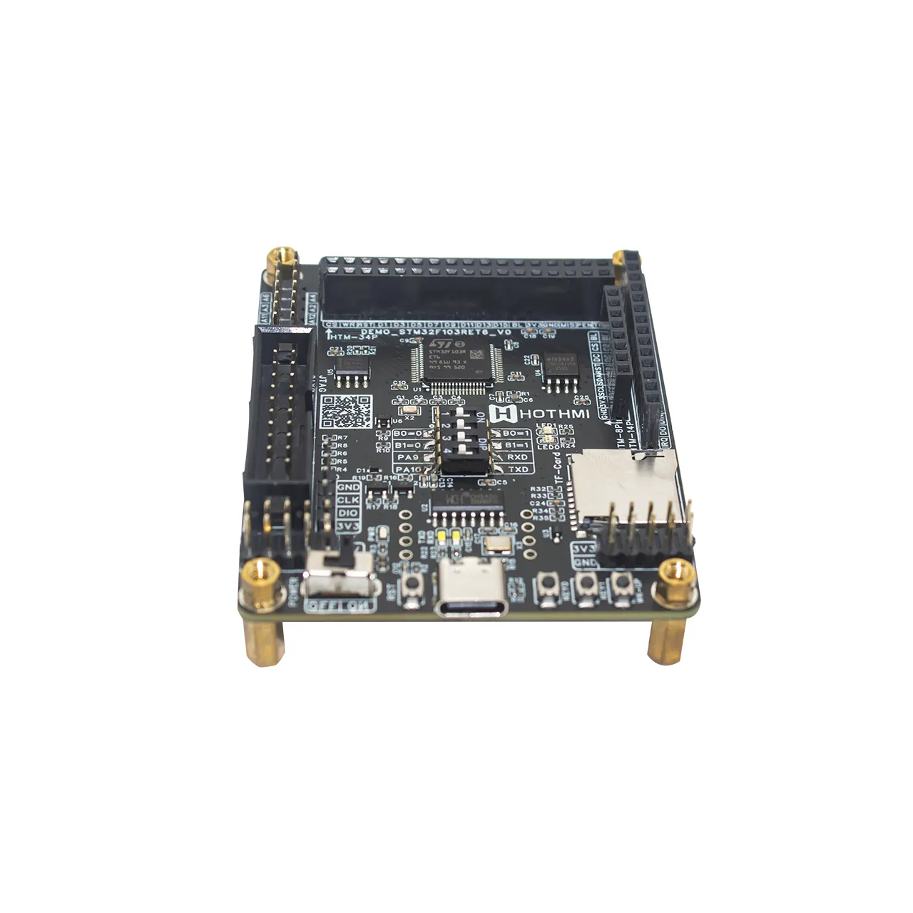 The DEMO_STM32F103RET6 development board features an original STM32F103RET6 chip, based on the ARM Cortex-M3 core architecture, with a working frequency of up to 72MHz. It is equipped with 512KB FLASH (program memory) and 64KB SRAM (data execution memory), supports the Thumb-2 instruction set, and balances code execution efficiency with storage capacity, meeting the development needs of medium-complexity embedded programs. This development board is compatible with multiple display interfaces and is compatible with most of our company's displays and display modules that use MCU and SPI interfaces, facilitating plug-and-play functionality and improving development efficiency. Hardware design features of the DEMO_STM32F103RET6 development board include: 1) Multiple display interfaces, including: HTM-34P, HTM-8P, HTM-14P, SPI-10P, and MCU-40P. Furthermore, resistor selection is provided on the back of the development board, allowing users to modify the resistor selection configuration according to the actual MCU display interface definition. 2) Reversible USB Type-C Interface Design. Utilizing the USB-A to Type-C data cable, different functions can be achieved through reversible insertion. A single USB interface supports both one-click serial download and retains the microcontroller's USB device communication capabilities. 3) Abundant Storage Resources. The main control chip has 512KB of built-in FLASH space, an external 16MB FLASH chip, and a reserved SD card slot, meeting large data storage needs. 4) Rich Interactive Resources. The board features four buttons (including a RESET button) and five LEDs (including a PWR power indicator), allowing for pin configuration for interactive development. 5) Diverse Program Update Methods. The development board provides JTAG, SWD, and one-click serial download interfaces, allowing users to choose any interface for program updates, offering high flexibility. 6) Easy to Develop and Use. The system utilizes DIP switches for BOOT and serial port selection, eliminating the traditional "pin header + jumper cap" design. Switching between options is straightforward without needing to remove or reinsert jumpers, making it more convenient. Furthermore, all interfaces are clearly labeled with silkscreen markings for easy identification; the interface layout is logical and user-friendly; and onboard resources are fully utilized for efficient operation.
